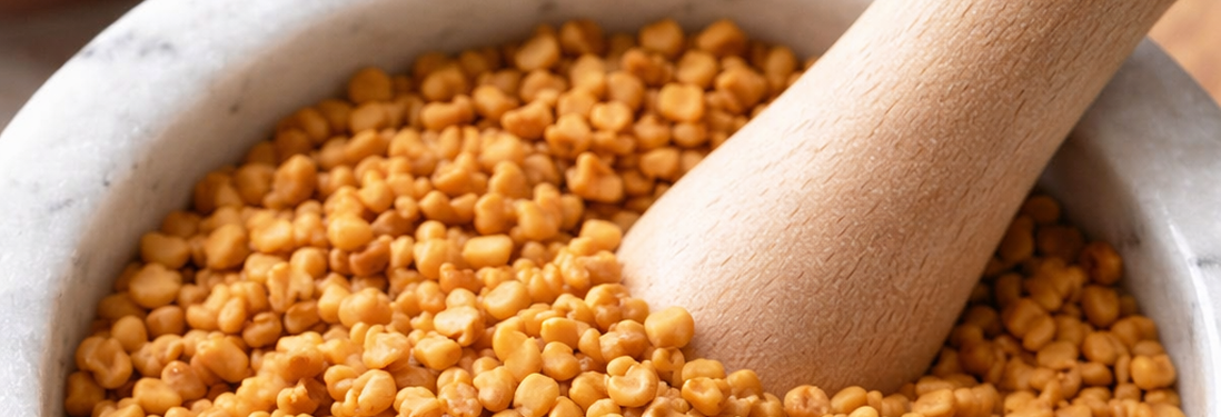 Fenugreek contains galactomannan – a natural mucilage that swells into a viscous gel upon contact with water. This gel forms a protective film over the lining of the stomach and esophagus.